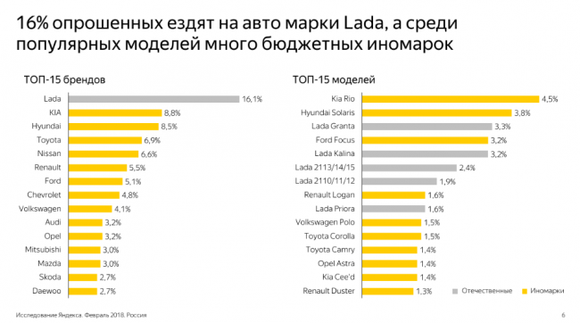 В 2018 году самой популярной маркой машины среди россиян оказалась Lada, а самой популярной моделью — Kia Rio.