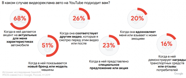 Google сообщает, что 92% опрошенных смотрели видео в интернете во время выбора автомобиля, среди них 79% смотрели ролики на YouTube.