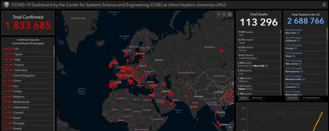 Число зараженных близится к 2 миллионам. Больше всего случаев заражения в США — 546 874. Среди европейских стран больше всего больных зарегистрировано в Испании, Италии, Франции и Германии. В России — 15 770: