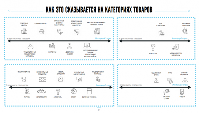 - Влияние ситуации с COVID-19 на российский FMCG ритейл (1 апреля): какие ритейл-каналы оказались в выигрыше в ситуации с коронавирусом, и что из опыта, полученного индустрией FMCG в прошлые кризисы, может пригодиться в этом году