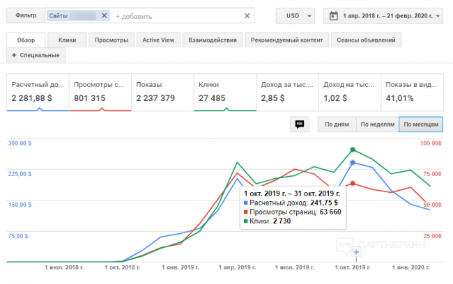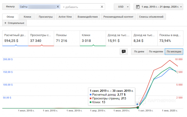 Сейчас знакомый занимается его монетизацией, и, по опыту, такой сайт может приносить 20 000–30 000? в месяц.