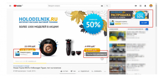 Рекламе в YouTube особенно стоит уделить внимание, так как в период самоизоляции аудитория этой платформы увеличилась, как и время, которое там проводят пользователи. Если вы хотите привлекать лиды, протестируйте формат TrueView for Action. Объявления этого формата выглядят так: