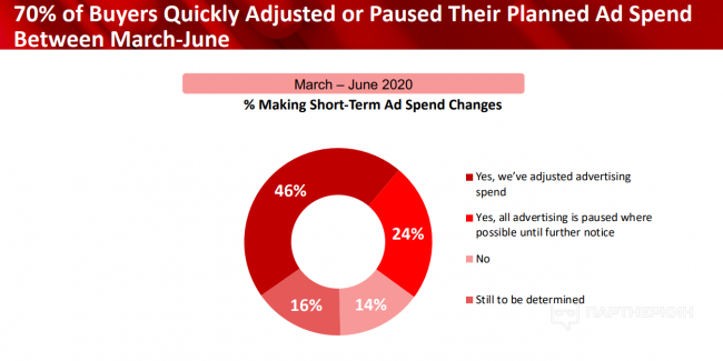 Согласно исследованию IAB, 70% рекламодателей сократили или вовсе приостановили рекламные кампании в период с марта по июнь: