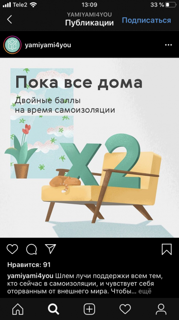 Сервис доставки еды Yami Yami начисляет двойные баллы в период самоизоляции