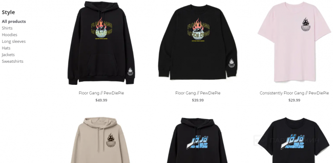Однако основной доход Пьюдипай получает не с партнерки YouTube, а с прямой рекламы. PewDiePie продает товары на двух веб-сайтах: Presensent.com и ShopPewDiePie.com. В описании роликов на YouTube проставлены соответствующие ссылки. По разным оценкам, в 2019 году блогер зарабатывал более $6 миллионов ежемесячно от продажи товаров с помощью своих видео.