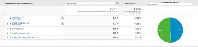 Так как умные кампании используют машинное обучение, мы выждали две недели, пока алгоритмы обучатся. После этого мы отключили обычные, чтобы избежать внутренней конкуренции.