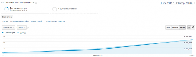 После запуска и месяца работы обычной торговой кампании с оптимальным бюджетом, по итогу декабря мы получили такие результаты: