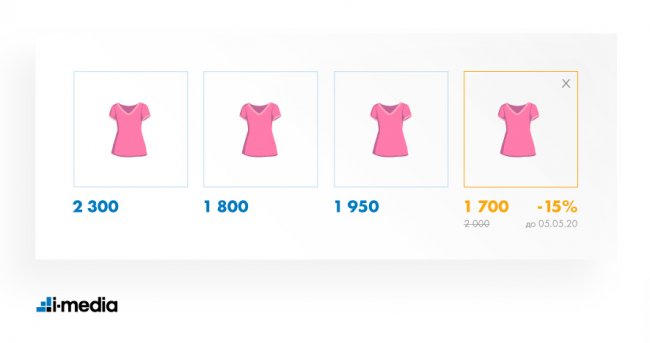 Представим, что у нас на складе мертвым грузом лежат женские блузки нежно-розового цвета. Это остатки прошлой коллекции, которые нуждаются в реализации. Мы можем их продать с помощью динамического ремаркетинга. Генерируем фид этих товаров, указываем атрибут sale_price (цена с учетом скидки), добавляем столбец с атрибутом sale_price_effective_date (диапазон дат скидки). На выходе получаем объявления с блузками, на которых сразу перечеркнута цена, указан размер скидки и ограниченный период ее действия. Вы ведь понимаете, как сильно эти факторы влияют на принятие решения о покупке?