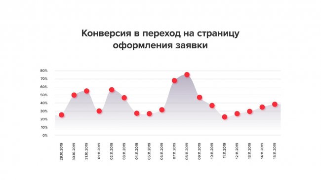 - конверсия в переход на страницу оформления заявки на сайте банка — не ниже 29%;