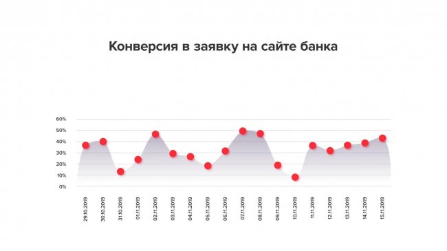 - конверсия в заявку на сайте банка (CR) — не ниже 30%.