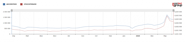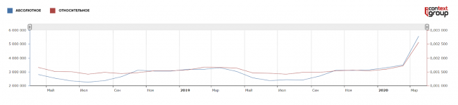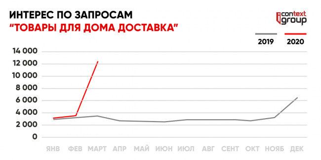 «Основным локомотивом были запросы по медицинским маскам, и именно этот товар в значительной степени усилил категорию, — комментирует директор отдела контекстной рекламы iConText Group Владимир Прозоров. — Количество запросов по фразе „медицинская маска“ в марте 2020 года выше показателя марта прошлого года почти в 500 (!) раз».