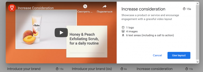 В видеоконструкторе есть шаблоны для создания типовых роликов.