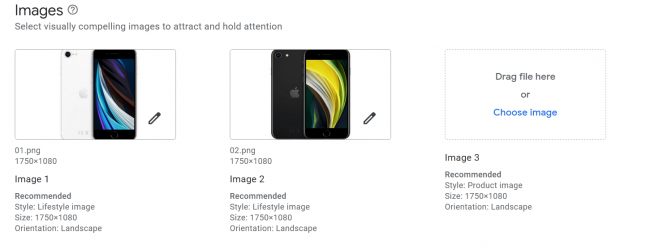 Под каждым блоком указаны рекомендации к размеру и ориентации изображений. При превышении размеров возникает ошибка.