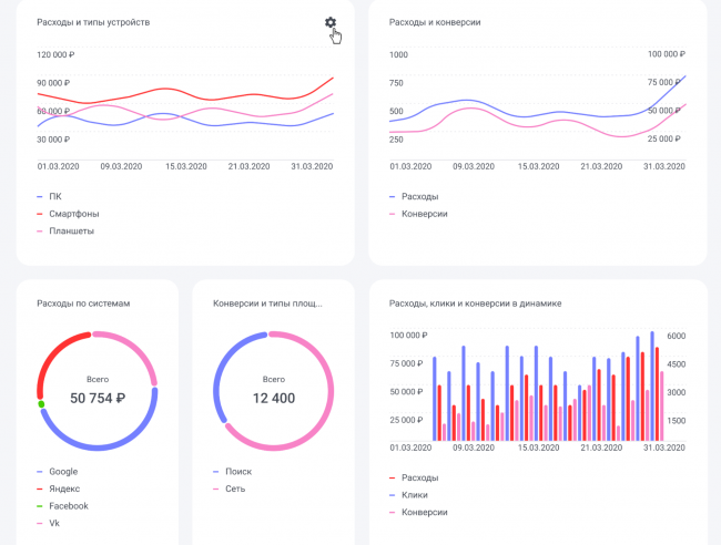 - статистикой из рекламных систем: Google Ads, Яндекс.Директа, Facebook Ads, «Вконтакте»;