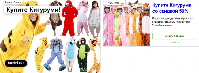 Сделали отдельную кампанию на сети и ретаргетинг. В креативах использовали изображения с максимально широким ассортиментом пижам.