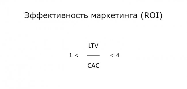 Есть простое правило: если значение ROI (LTV/САС) попало в интервал между 1 и 4, то бизнес и маркетинг у вас работают эффективно.