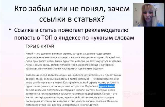 Естественно, как и большинство курсов, вобравших в себя бесплатные материалы, вебинары Деригиной могут дать общее представление о сайтах. Однако, после их прохождения новичок не сможет не то что стать инвестором в сайты, а даже правильно выдавать задания программистам, сеошникам и копирайтерам и проверять их — ему просто не хватит компетенции. В своих уроках она напрямую призывает не вникать в SEO, потому что это будет только мешать. Как новичок, не зная основы SEO, будет зарабатывать на продаже ссылок, да и с небольшим бюджетом в 20к рублей, как она утверждает?