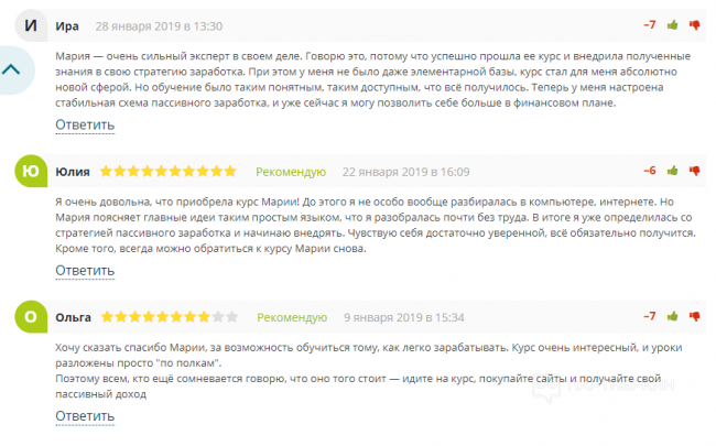 Под «Доходными сайтами» Мария, очевидно, имеет в виду те сайты, которые приносят доход с продажи ссылок. Она в своем обучении делает акцент именно на продажу ссылок. Алгоритм инвестирования выглядит больно знакомым, потому устаревшим по крайней мере лет на 10 — купить сайт и загнать его на биржи ссылок. Вот и весь бизнес.
