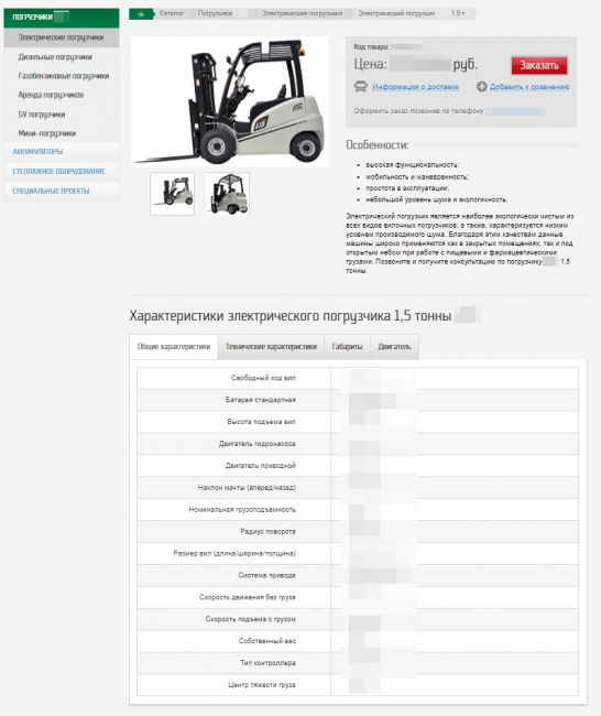 Вряд ли дорогие погрузчики покупают те, кто ими управляет. Закупки возлагаются на помощников и секретарей. В технике они разбираются слабо, без подробной консультации заявку не оформляют. А потому сайт с объемным каталогом, как правило, без цен такие покупатели быстро закроют.