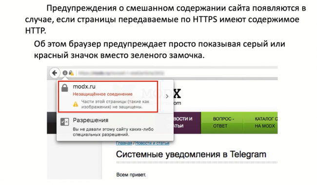 - Исправьте HTTP страницы со смешанным содержимым;