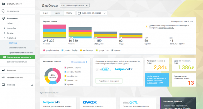 Наглядный дашборд в Mango Office: визуализация воронки, звонки из разных источников, сводка показателей