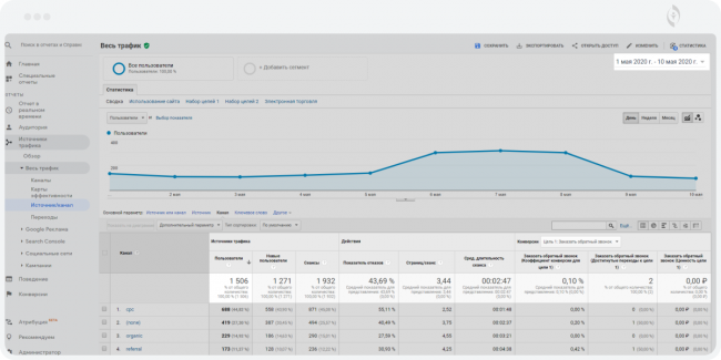 Источники трафика за 10 календарных дней — с 1 по 10 мая 2020 года.