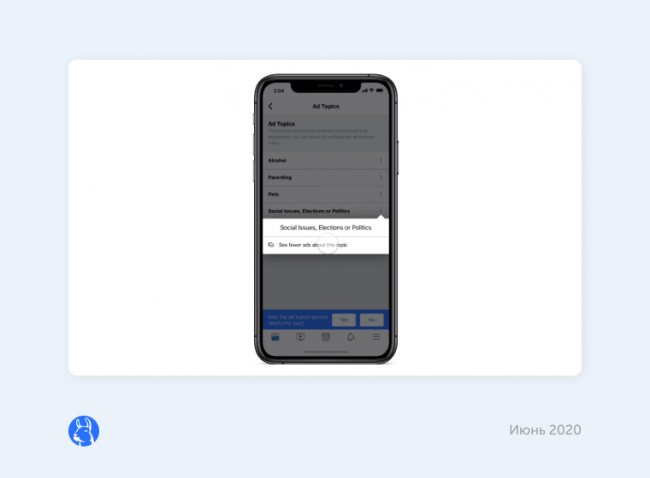 получили возможность блокировать политическую рекламу. Это связано с предстоящим голосованием в США и позволит людям избежать давления. Осенью блокировка политической рекламы станет доступна и в других странах, где возможно внедрить эту опцию. Также заработал Информационный центр по голосованию (Voting Information Center). В нем можно узнать, как и где можно проголосовать в США, получить информацию о досрочном голосовании и т. д.