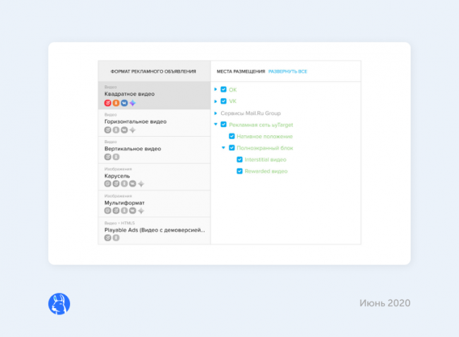 Сейчас myTarget позволяет работать с этими форматами только для цели «Установки приложения». Рассчитываем, что в ближайшее время появится возможность выбирать цели и использовать каждый формат в рамках медийных кампаний.Странно, что myTarget сразу не разделил такую рекламу на два формата. У этих форматов цели существенно отличаются, а значит, и результаты нужно анализировать отдельно. Ранее результат мог быть смешанным, теперь же можно тестировать форматы по отдельности и объективнее оценивать результат.