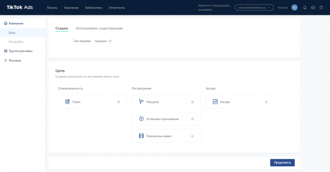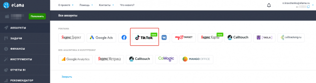 Для самостоятельного запуска рекламы в TikTok через аукцион необходимо получить доступ к рекламному кабинету TikTok Ads. Чтобы подключить доступ к рекламному кабинету, оплачивать рекламу с расчетного счета или банковской карты и получать полный комплект закрывающих документов на русском языке, регистрируйтесь в eLama.