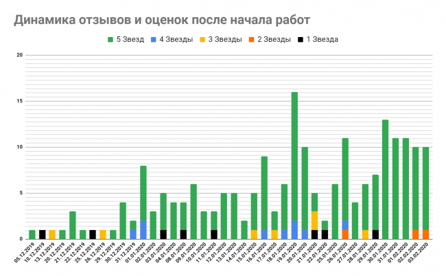 Работа с рейтингом началась за неделю до запуска рекламной кампании в Google Ads и продолжалась одновременно с ней. Клиент внедрил систему, которая в определенный момент предлагала активным пользователям оценить приложение в магазине. Это позволило увеличить рейтинг приложения в Google Play с 3,2 звезд до 4,3, а в AppStore — c 4 до 4,5.