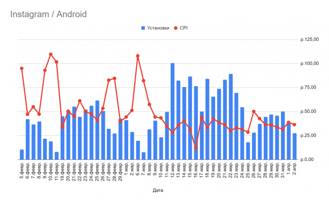 Мы предположили, что такое поведение связано с тем, что иногда приложение появлялось в магазине рядом с играми про охоту. Возможно, его тоже принимали за игру. В итоге было решено отключить рекламу в Google Ads и сосредоточиться на продвижении в Instagram и подключении других каналов.