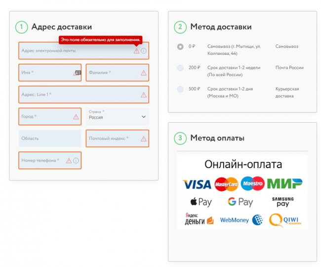 Проблемы с формой обратной связи. Длинная форма со множеством полей и некорректные пункты (например, необходимость ввести адрес доставки, если человеку нужен самовывоз). В 90% случаев такие ошибки ведут к потере клиента.