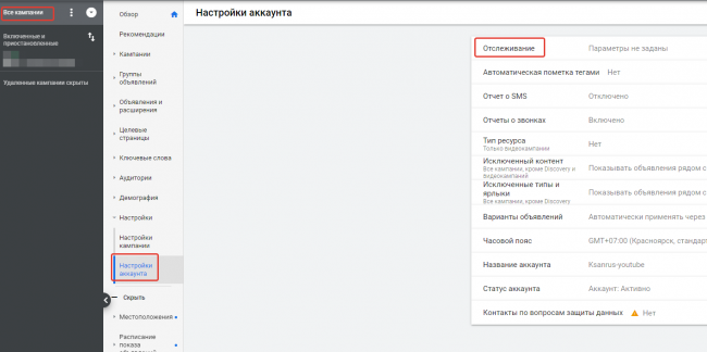Уровень аккаунта: Все кампании — Настройки аккаунта — Отслеживание.