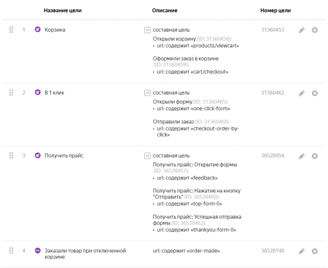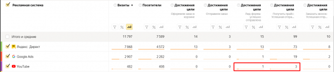 Перед тем, как анализировать лиды с YouTube, в Яндекс.Метрике и/или Google Analytics должны быть настроены цели. Например, оформление заказа в корзине, отправка данных с лид-формы, заказ обратного звонка.