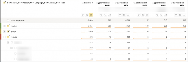Чтобы посмотреть отчет по конкретным видео и рекламным кампаниям, нужно, как мы писали выше, использовать UTM-метки и соответствующий отчет. Добавьте в него метрики по достижениям целей и узнайте, какие ролики или даже отдельные комментарии сгенерировали больше лидов.