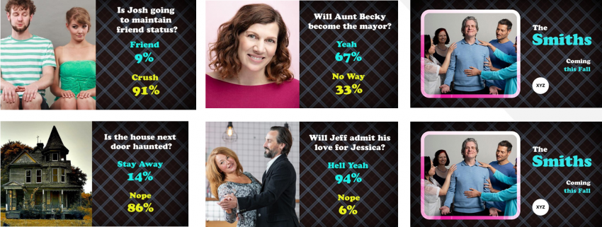 Такой формат легко адаптировать под тизеры в YouTube. В этом случае можно вставить в видеоролики кадры и предложить пользователям в соцсетях угадать какой-то факт: останутся ли герои друзьями, водятся ли призраки в доме напротив и т. д. Карточки и данные из опросов поместите в креативы для объявлений на YouTube, а в конце предложите посмотреть новый сезон сериала, чтобы узнать правду.