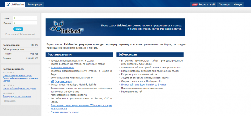 Linkfeed. Проверенный ресурс, который давно работает. Здесь можно купить и продать разные виды ссылок. Стабильная площадка, но без особых перспектив развития. Вознаграждения выплачиваются по требованию на WebMoney.