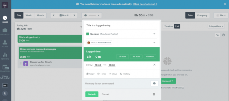 Timely — трекер автоматического учета времени для фрилансеров и команд любого размера.