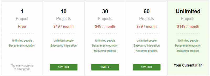 Бесплатный тестовый период — 30 дней. Далее бесплатно можно подключить один проект. Доступна интеграция с Basecamp.