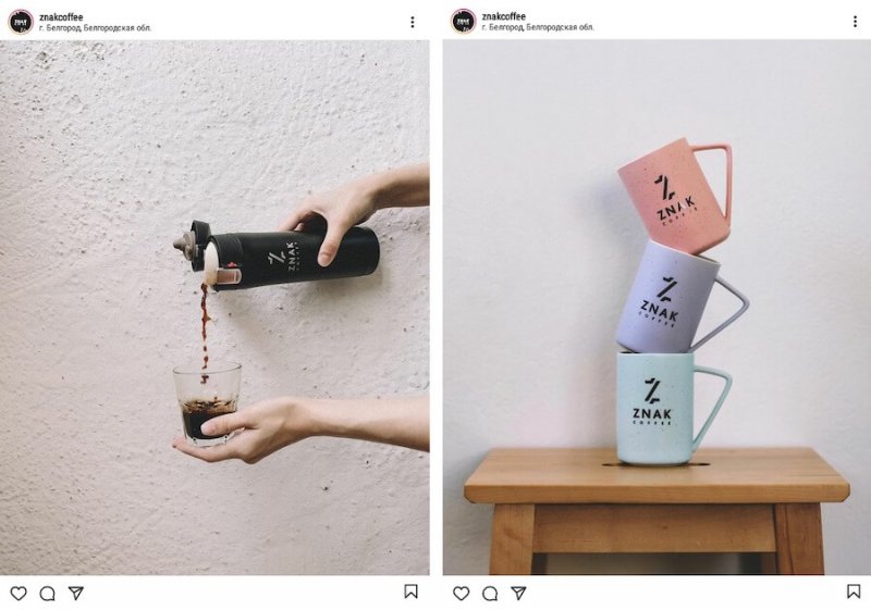 Вместо безделушки придумайте то, чем клиент будет пользоваться. Задача — создать вещь, которая будет постоянно на виду. Пример — термос и кружки от кофейни Znak. У них еще есть блокноты и чехлы на телефоны. Полезно и стильно.