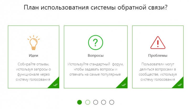 Базовая настройка. После регистрации сервис предлагает указать, как вы будете использовать систему обратной связи. Советуем выбрать все 3 варианта — собирать идеи, вопросы и проблемы от клиентов (позже вы сможете отключить лишнее или переименовать категории).