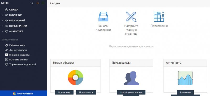 1. Сводка. Показывает сотрудникам быстрый обзор по всем темам, заявкам и активности.