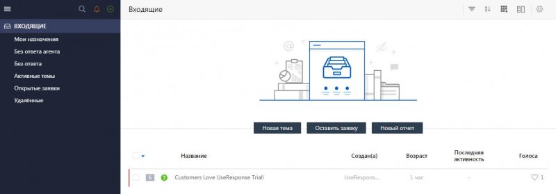 2. Входящие. В этом разделе отображаются все созданные темы и заявки из различных источников, и создаются отчеты по ним. Можно использовать отчеты по умолчанию или создать свои. Есть функция одновременного редактирования нескольких отчетов. Входящие можно отсортировать по открытым, удаленным, оставленным без ответа, также вы можете просмотреть активные темы. Фильтры позволяют вовремя реагировать на темы и заявки, выполнять их в порядке важности, закрывать или удалять неактивные.