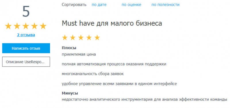 В плюсах также указывают возможность добавить мультиязычность и создать нескольких центров поддержки под разные продукты. Пользователи ценят сервис UseResponse за богатый функционал, с которым ни одна заявка клиента не остается без ответа.