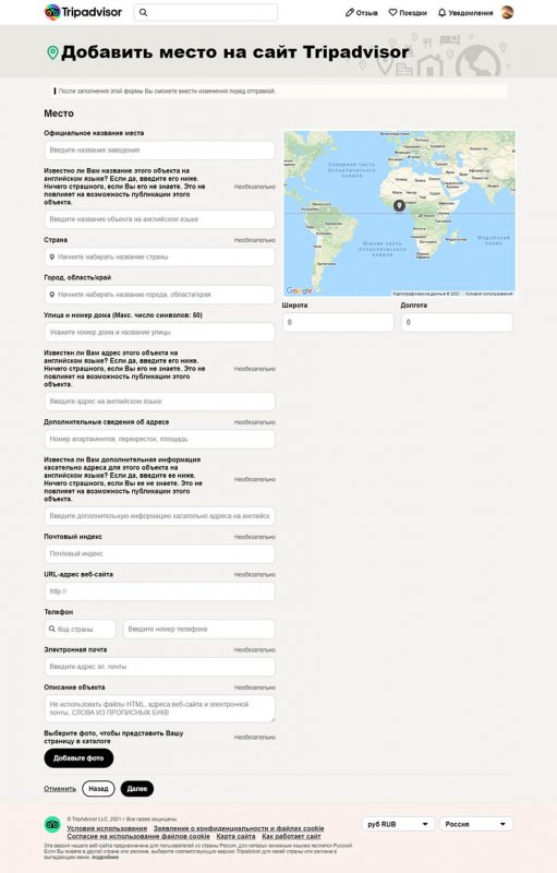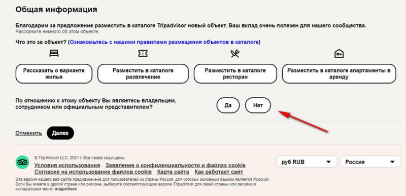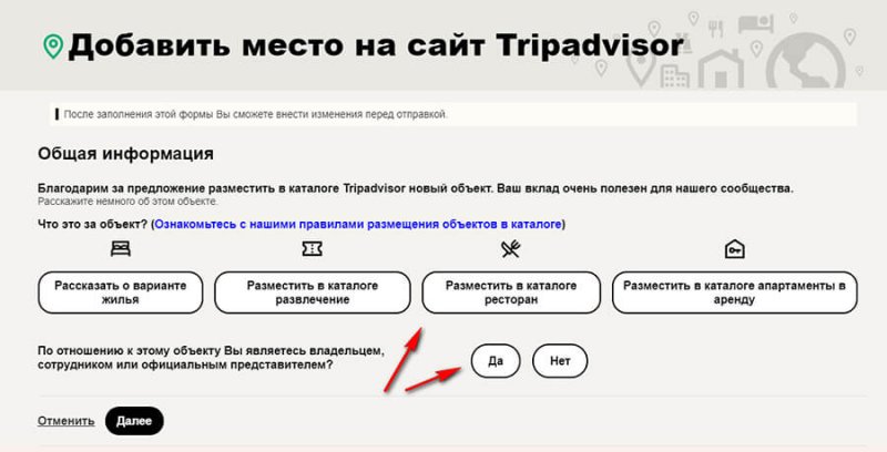 Шаг 5. Подтверждаем данные. Есть несколько способов это сделать, и они зависят от того, какая информация об объекте содержится в базе Трипадвизор.