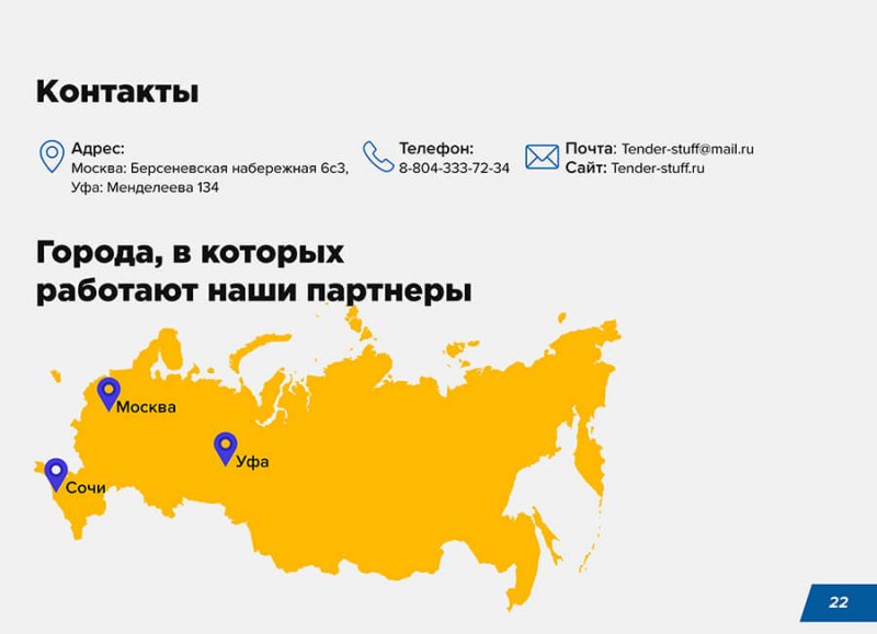 Подводим итоги. Этот блок есть не во всех презентациях — в основном в информационных и отчетах. Например, если проводится анализ рынка. В продающей презентации в этом блоке обычно размещают призыв к действию.