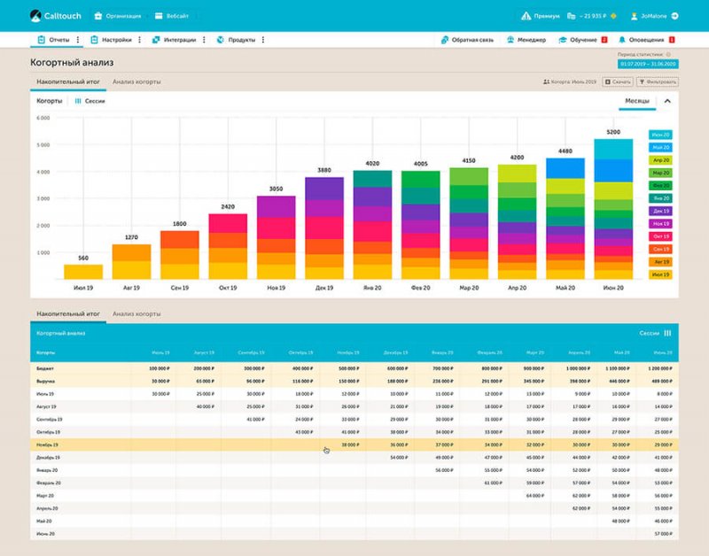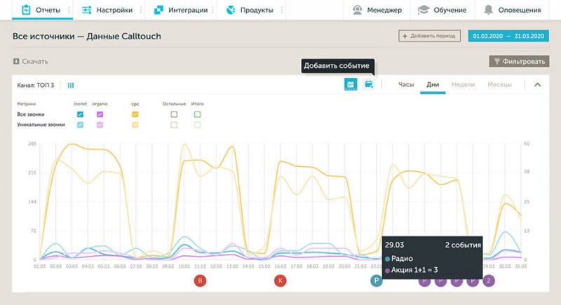 3.После подключения данные начнут собираться автоматически и будут отображаться в личном кабинете Calltouch в виде детальных отчетов.