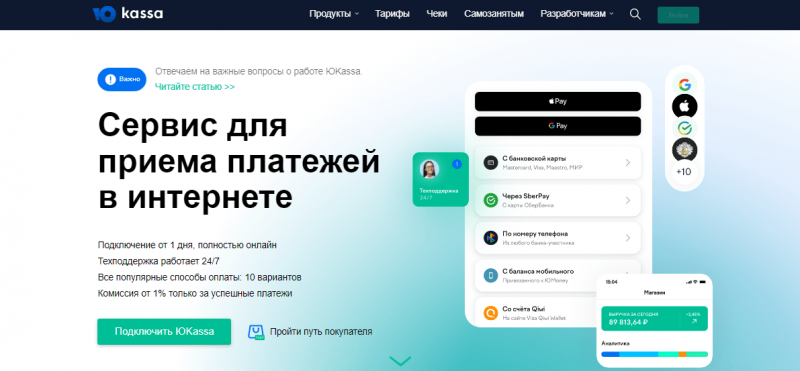 ЮКасса – платежный сервис для бизнеса, который до 2020 года носил название Яндекс.Деньги. Позволяет делать переводы физическим и юридическим лицам, оплачивать покупки в онлайн и офлайн режимах любым способом – картой, электронными деньгами, SberPay или в кредит. Работает с картами Visa, Maestro, MasterCard, «Мир», ЮMoney и рядом других.