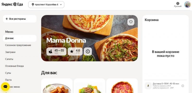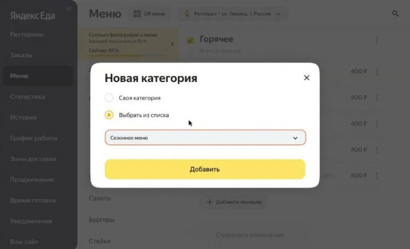 7. После модерации меню ресторан появится в сервисе, вы начнете принимать первые заказы.