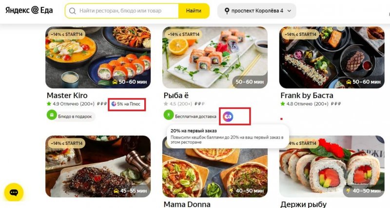 Продвижение ресторана внутри площадки. Акции и скидки для пользователей сервиса помогут увеличить продажи и улучшить позиции ресторана в поиске.